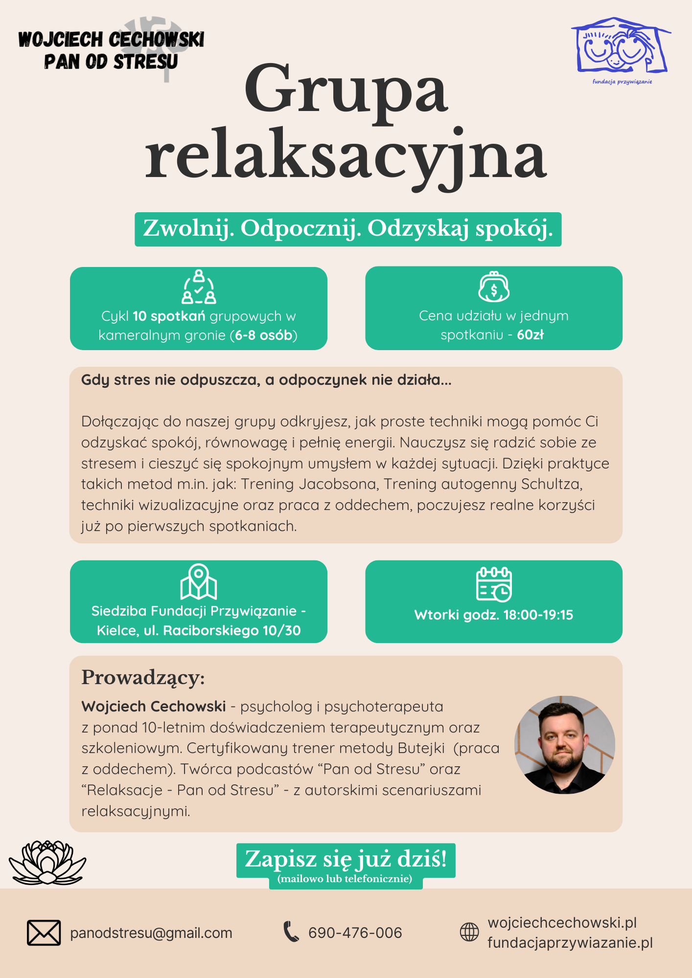 Planowany czas rozpoczęcia grupy – połowa czerwca lub po zapełnieniu miejsc (8 osób)