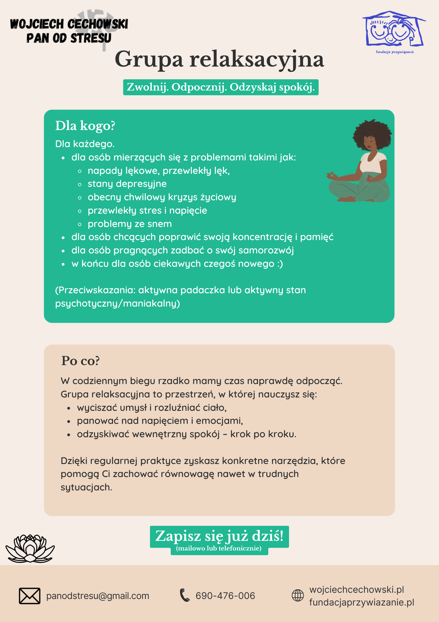 Miło mi poinformować, że właśnie ruszyła rekrutacja do prowadzonej przeze mnie grupy relaksacyjnej.